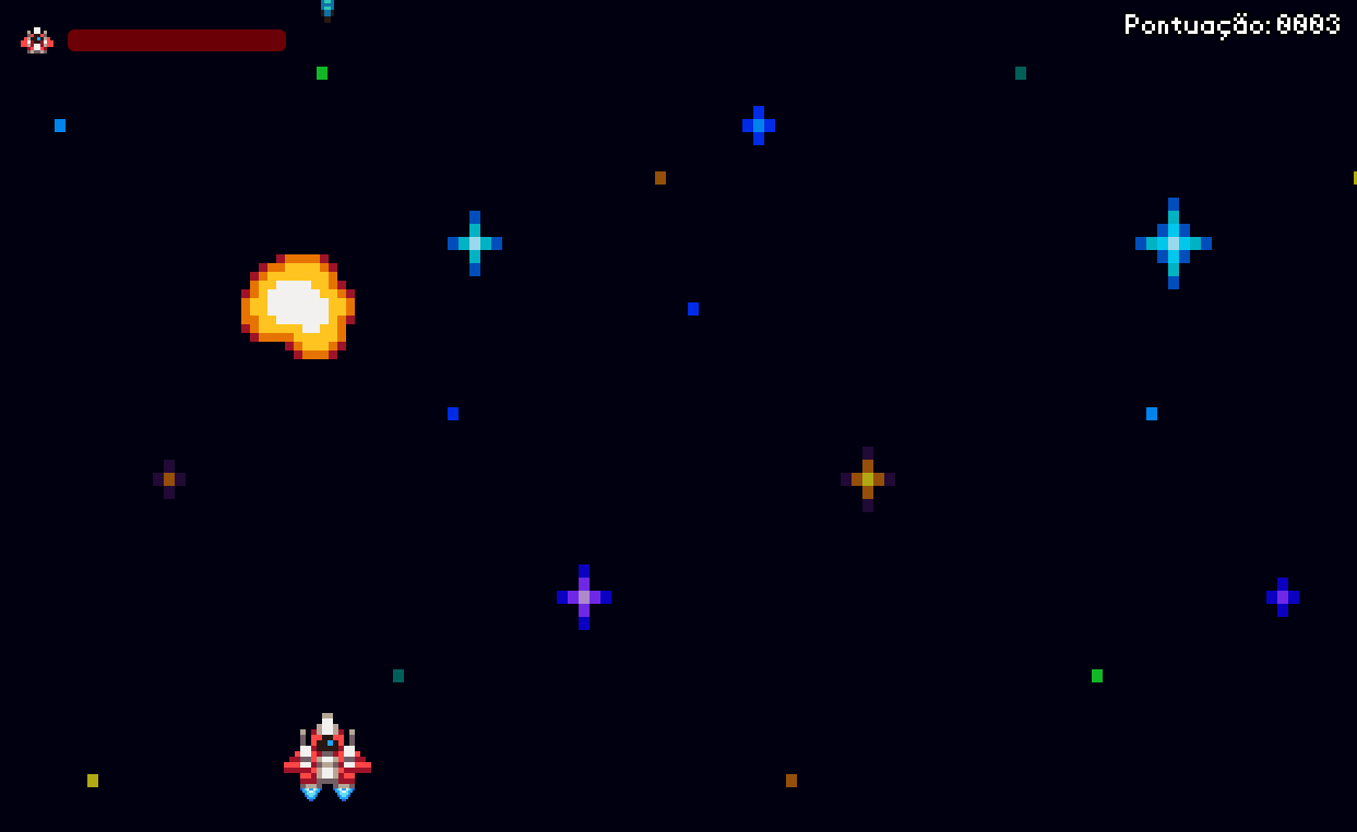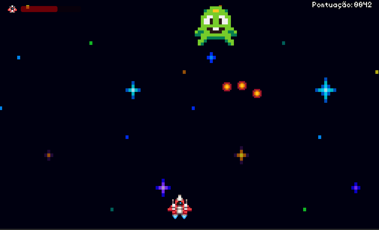 No jogo, o jogador controla uma nave que deve sobreviver a ondas de inimigos, incluindo asteroides e diferentes tipos de adversários, até enfrentar um boss final. O projeto foi desenvolvido com foco na prática de lógica de programação, controle de estados (rounds), colisões, sistema de vida e criação de mecânicas básicas de gameplay.